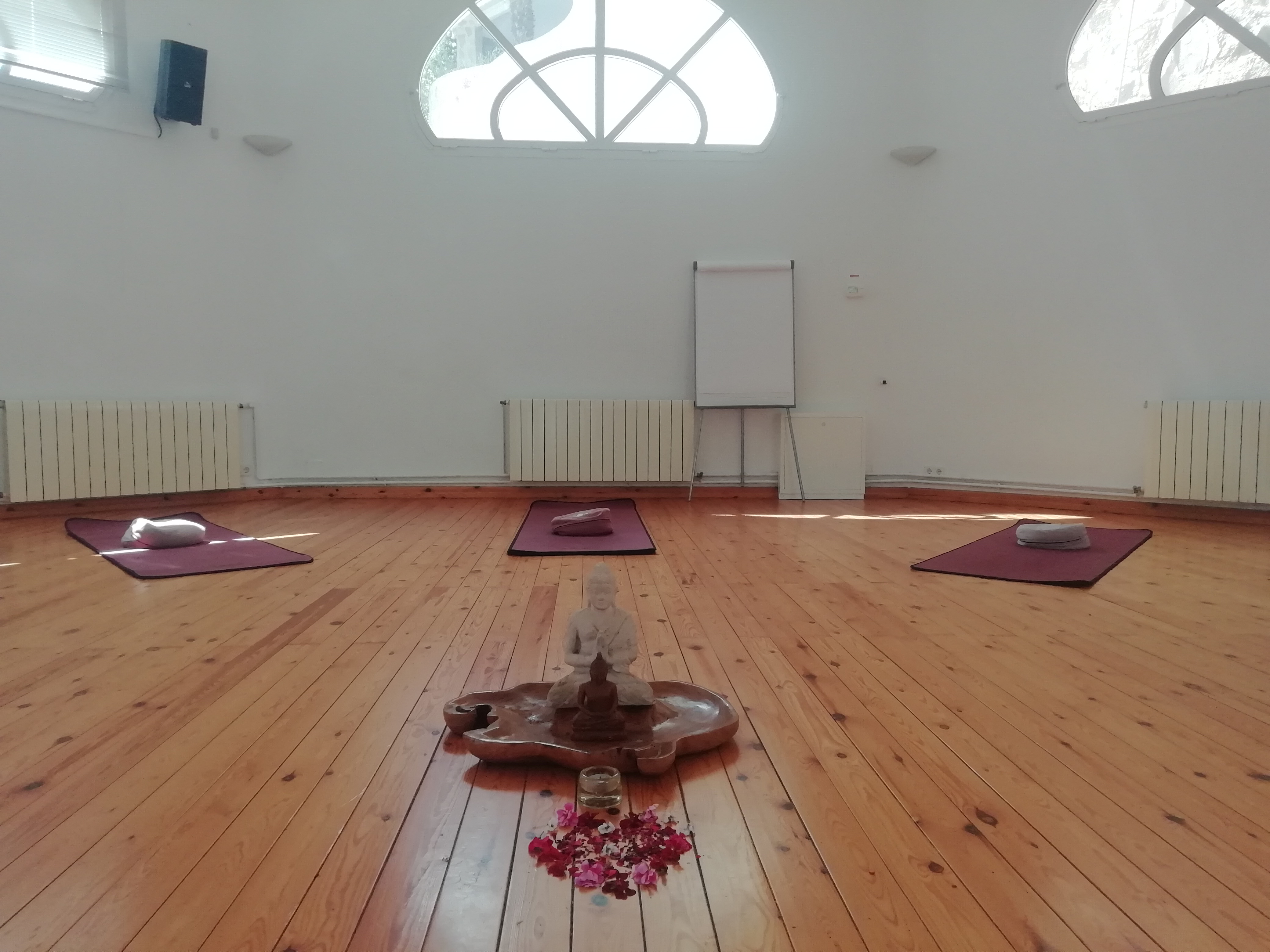 - Yogamatten, Meditationskissen, usw. sind vorhanden.
