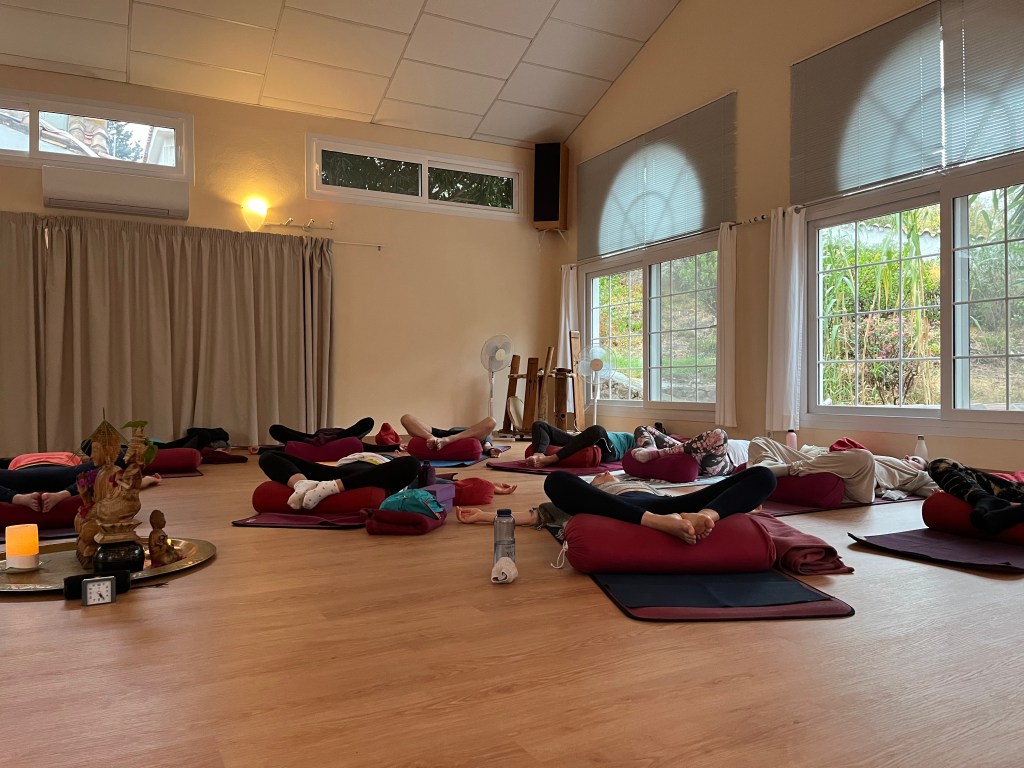 - Yogamatten, Meditationskissen & Ausstattung vorhanden